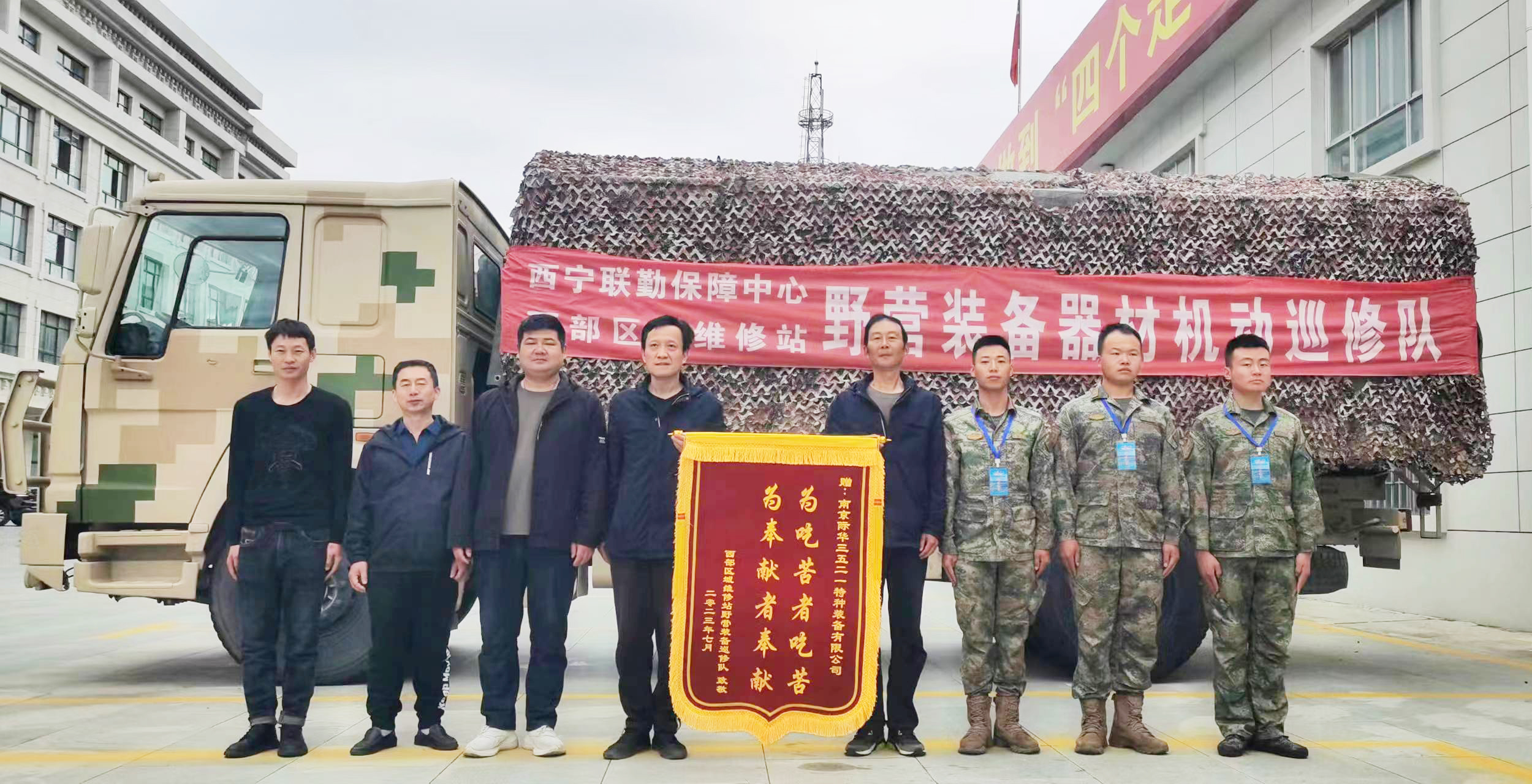 际华股份各巡修服务队充分发挥“军需精神”和敢打敢拼的工作作风,克服了不同地区气候多变、缺氧、紫外线强、道路难行等不利因素,加班加点,坚决落实“应修尽修”的要求,走一路优质服务一路,各营区纷纷送出感谢信及锦旗。