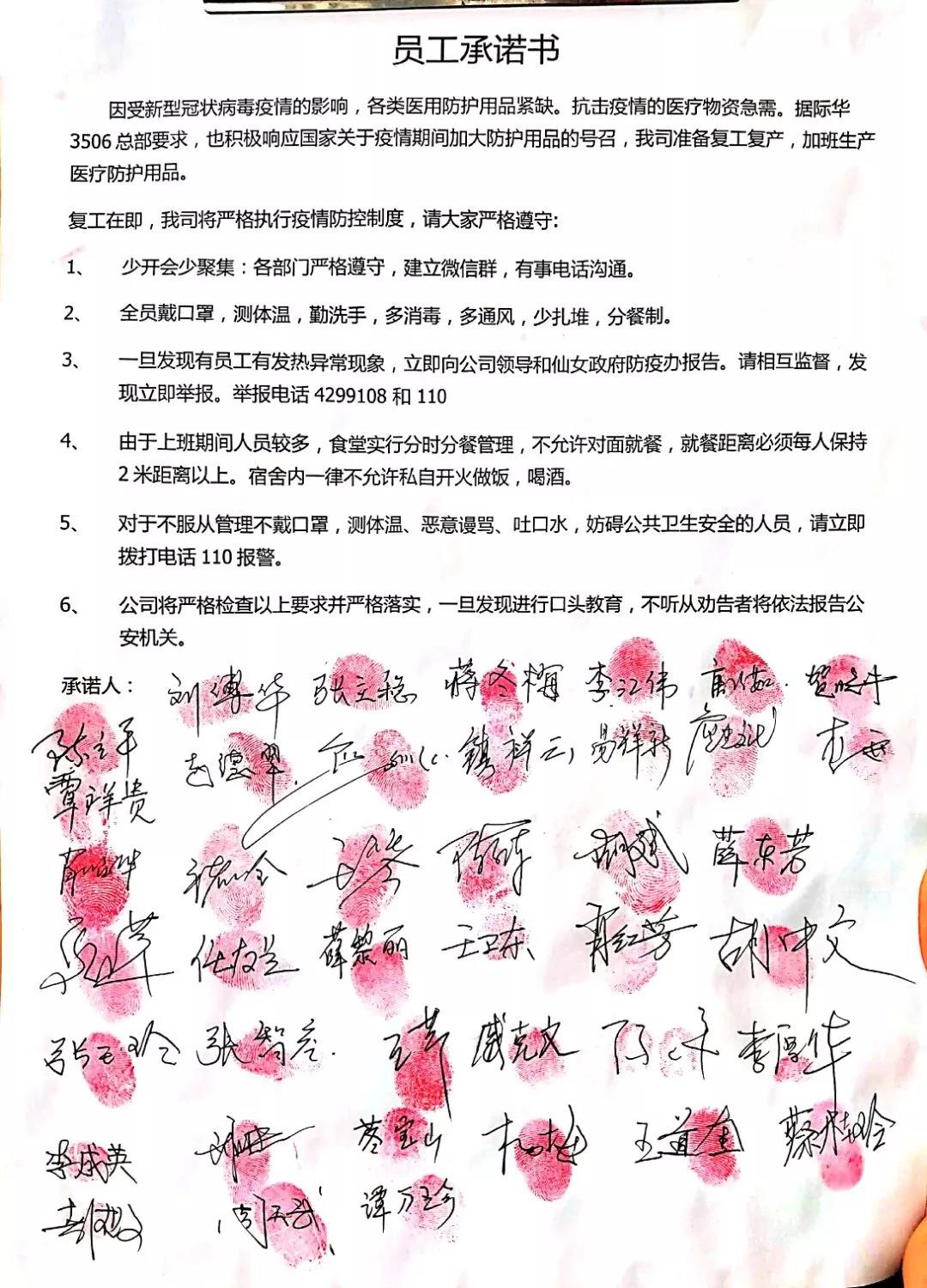 宜昌仙女服饰有限公司作为际华3506的分公司,在总经理李厚明的号召下,所有党员、预备党员、入党积极分子、公司中层干部在党支部书记熊文桃的领导下,对厂内生产防护服设备进行了清洁打扫、机器调试及维护,完成第一条生产线布置,其中包含压胶机7台,四线机10台,平车机10台。在疫情期间,为了保障所有员工的生命健康安全,党支部成立了党员疫情防控小组,确保应急保障生产任务的顺利开展,为疫情防控争取宝贵时间,为迅速投入生产打好基础。为保证完成防护服生产任务,公司干部职工作出了庄严承诺。