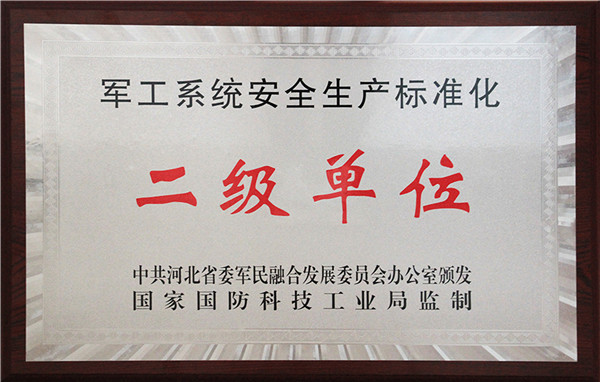 近日获悉,际华3514公司获得由中共河北省委军民融合发展委员会办公室颁发的“军工系统安全生产标准化二级单位”奖牌。本次审核认定既是对3514公司安全生产标准化达标创建工作的肯定,也对公司安全生产管理规范化、科学化、系统化和法制化提出了更高要求。