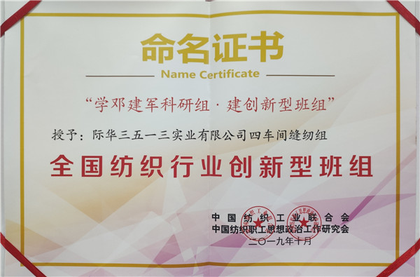 际华3513公司荣获“全国纺织行业创新型班组”称号​