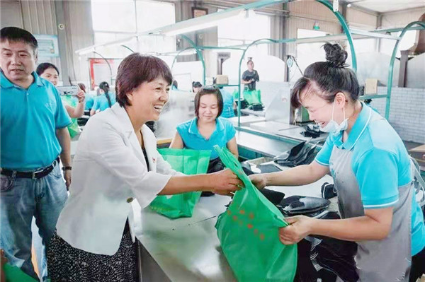 在际华3515公司工会主席韩立平的陪同下,吴花蕾一行来到生产车间,为职工们送来了白糖、毛巾、茶杯、夏桑菊、人丹等物品。吴花蕾仔细查看生产和防暑降温情况,与职工们亲切交谈,嘱咐大家天气炎热,要注意多补充水分,做好防暑降温工作。职工们纷纷表示,要把市总工会领导的关心化作动力,加倍努力工作,取得更加优异的成绩,回报市总工会的关心关爱,为漯河市发展作出积极贡献。
