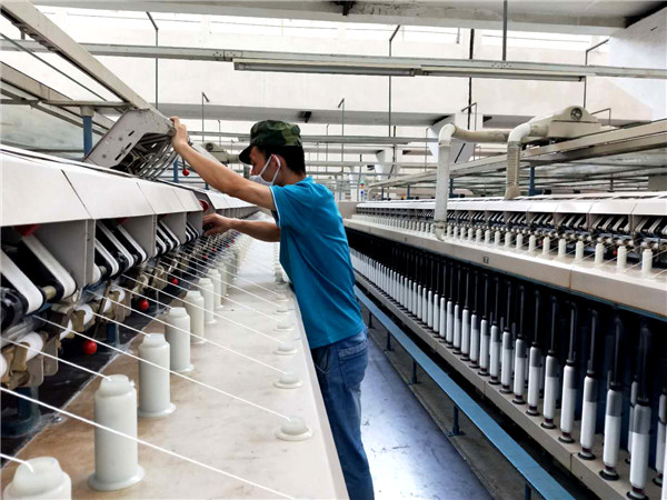 发挥设备效能“最大化”,减轻劳动强度。后纺车间将缠绕包装机挪到络筒包装现场进行再利用,收筒工在机台上直接把筒纱按规定层数码放整齐后送到打包区域,再经过包装机转台旋转实现对筒纱缠绕裹包,既减少了筒纱在搬运过程中的碰撞,又减轻了收筒工、包装工的劳动强度。此外,后纺车间细纱设备工段正对48台DTM129细纱机进行轨道改造,以扩大智能落纱小车的使用范围,最大限度地发挥设备效能,从而减轻落纱工劳动强度。