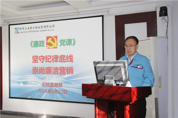 近日,际华3502公司纪委书记、工会主席许俊明,纪委副书记李忠良为营销总公司的党员干部上专题廉政党课,筑起拒腐防变、廉政营销的“堤坝”。